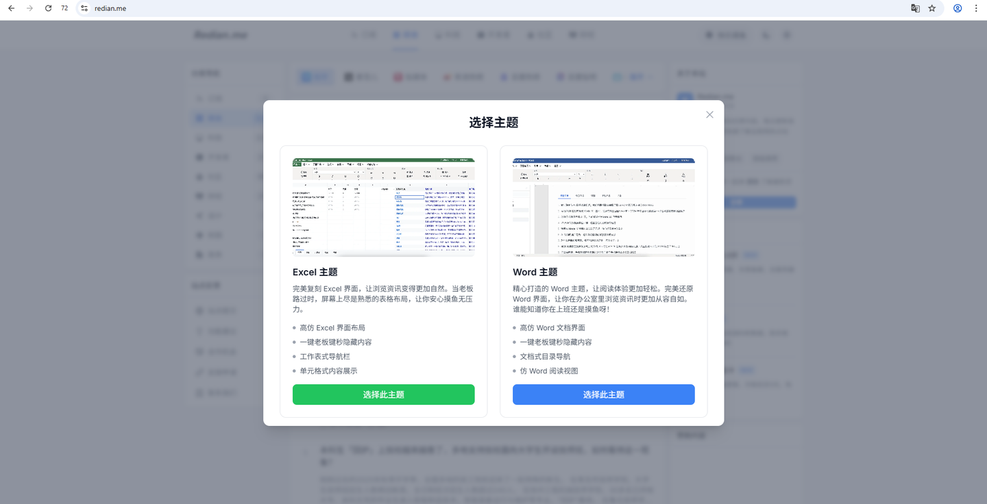 11、http://redian.me一个完美的摸鱼网站,这是一个可以实时看资讯,看视频的网站。在左侧可以看到使用方法,右侧点击就能看到想要的内容。并且下面可以切换不同的资讯类型,还可以切换成word页面,双击空格键全部隐藏,你就是个认真工作的好青年。