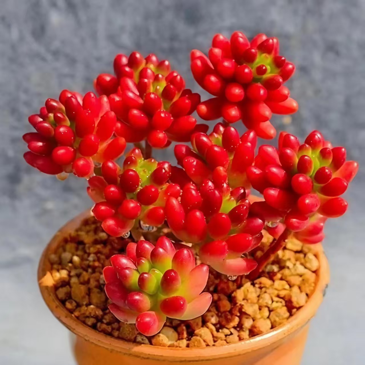 适宜生长温度为15-25℃。耐寒性较好,可短期耐受0℃低温,但长期低于5℃可能冻伤。夏季高温超过35℃时会进入休眠状态,此时应减少浇水、加强通风,昼夜温差大于10℃时,叶片上色效果最佳,秋冬季节的低温刺激是其变红的关键。