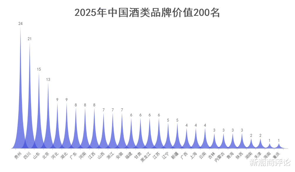 贵州排名第一,共有24个品牌入榜,包括23个白酒品牌和1个包装品牌。茅台(6252.87亿元)稳居榜首,习酒(3090.86亿元)、国台酒(2361.26亿元)跻身白酒行业前十。金沙回沙酒、台源、容大酱酒、赖茅、钓鱼台、酣客、夜郎古、五星、金酱、安酒、人民小酒跻身TOP100。