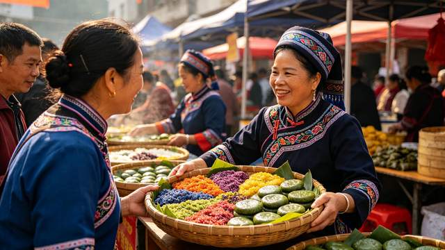 如果你想体验最原汁原味的非遗风情,一定要去百色阳圩镇。这里不仅有跨越三百年的山歌传承,更有极具沉浸感的 “壮迪”狂欢和壮家长桌宴。你可以穿着绚丽的民族服饰,在山水之间打卡拍照,尝一口香糯的五色糯米饭,喝一碗醇香的油茶,让味蕾也来一次深度旅行。
