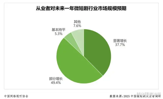 从业者们也是一致抱有乐观预期,《中国微短剧行业发展白皮书(2025)》相关调研数据显示,超过87%的受访从业者认为微短剧规模将持续增长。
