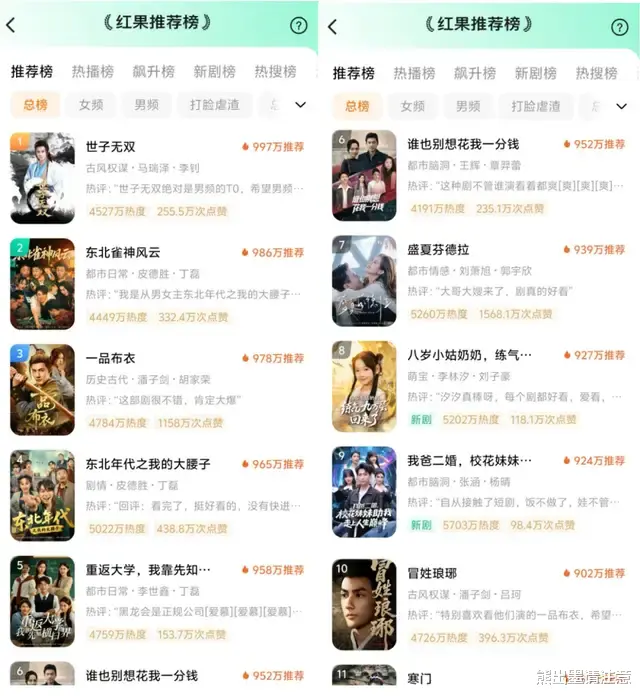 一是内容精品化,打开红果APP热榜,排名靠前的热门短剧多存在一个共同特征:流量与口碑齐飞。