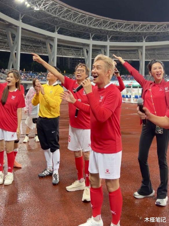 据悉,他们是来参加漳州足球赛的,香港足球队还是非常有名,明星球员非常多,咏麟、黄日华、曾志伟、陈百祥、何家劲、关礼杰这些人都踢了好多年。前几天,网友在遂宁的足球比赛上还分享了与陈浩民的合影,旁边身材高挑的应该是他的老婆蒋丽莎吧!红色球衣看着非常年轻。