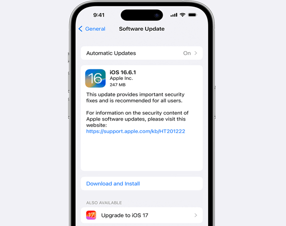 要更新 iPhone 上的软件,请打开“设置”应用,然后点击“通用”>“软件更新”。如果有可用更新,请点击“下载并安装”。