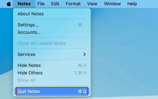 在您的 Mac 上:退出“备忘录”应用(“备忘录”菜单 > “退出备忘录”),然后重新打开它。