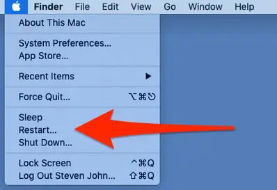 要重新启动 Mac,请点击左上角的苹果菜单,然后选择“重新启动”。