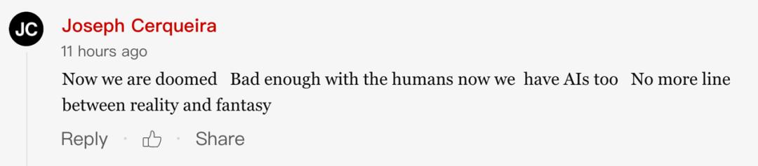 “我们完犊子了,人都够讨厌了,现在又加上AI。现实与虚拟没界线了。”