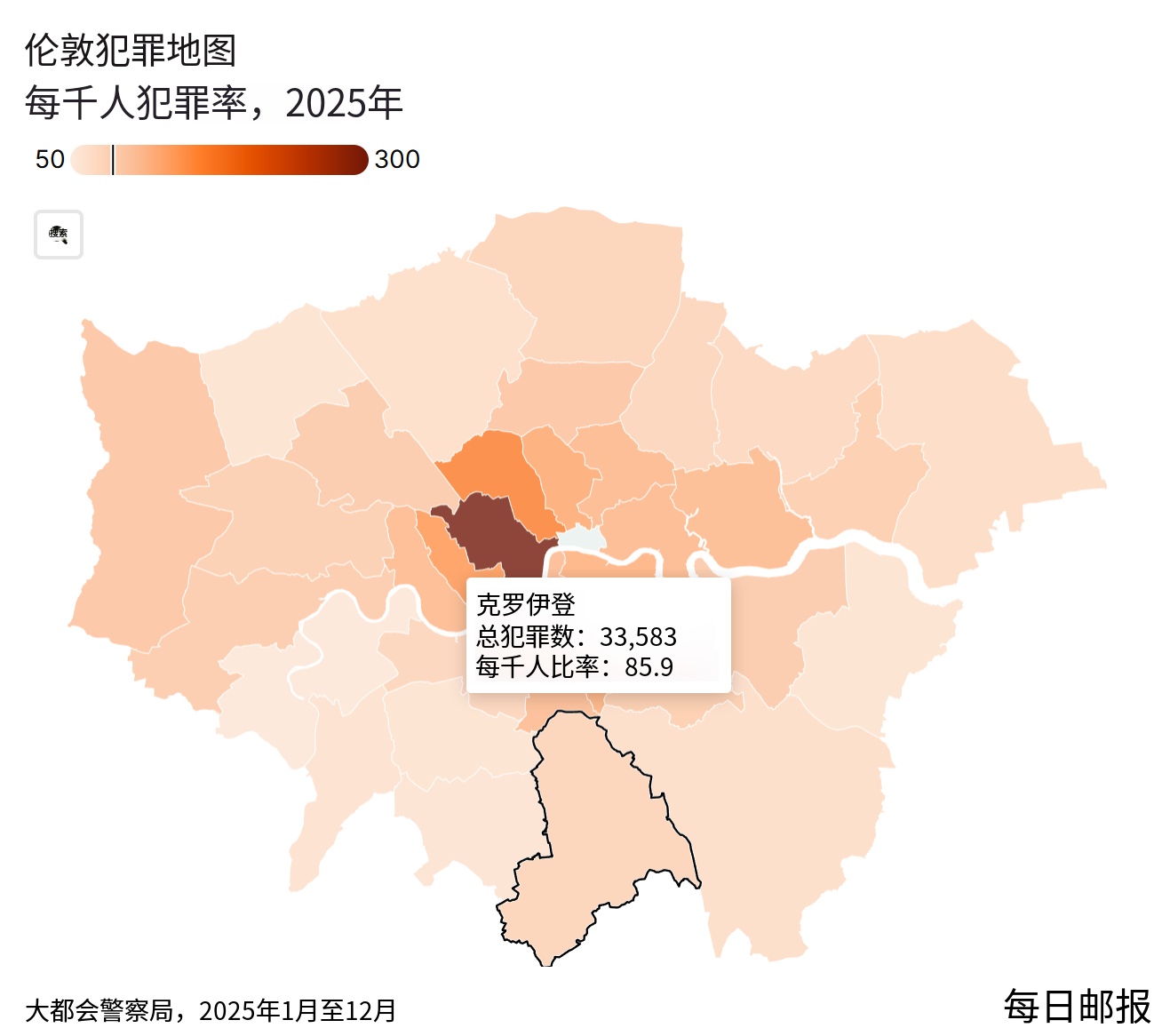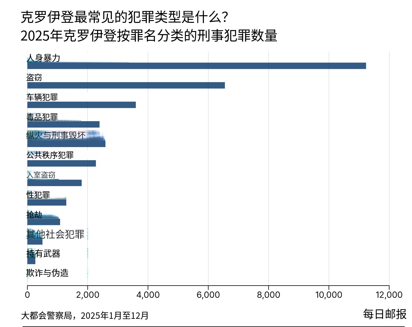 《每日邮报》报道的克罗伊登犯罪类型以及数量统计
