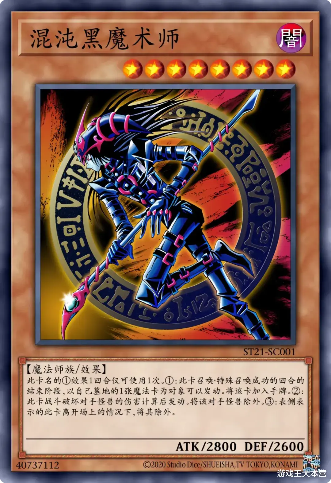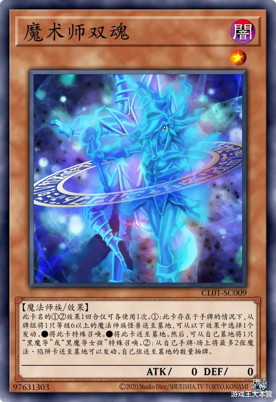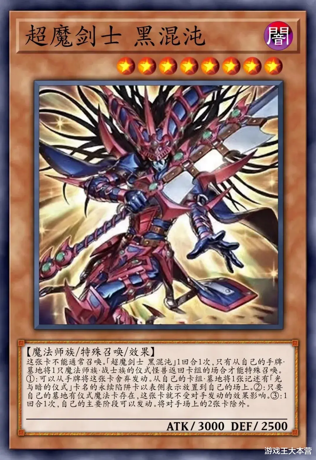 ①:这张卡只要在场上·墓地存在卡名就视为「黑魔导」。