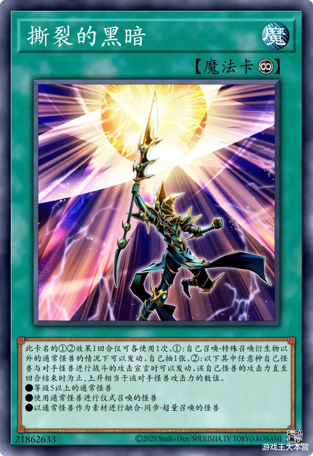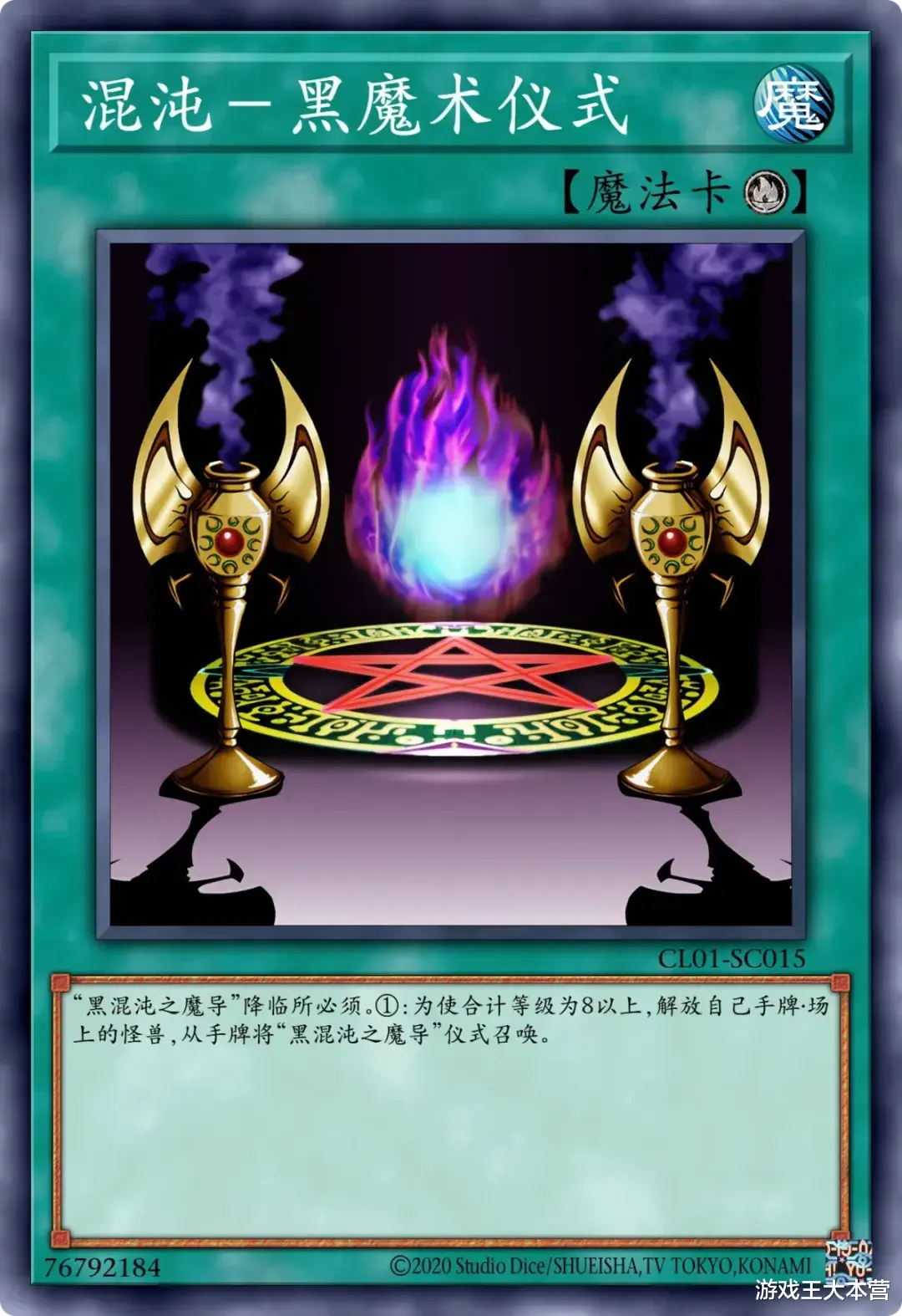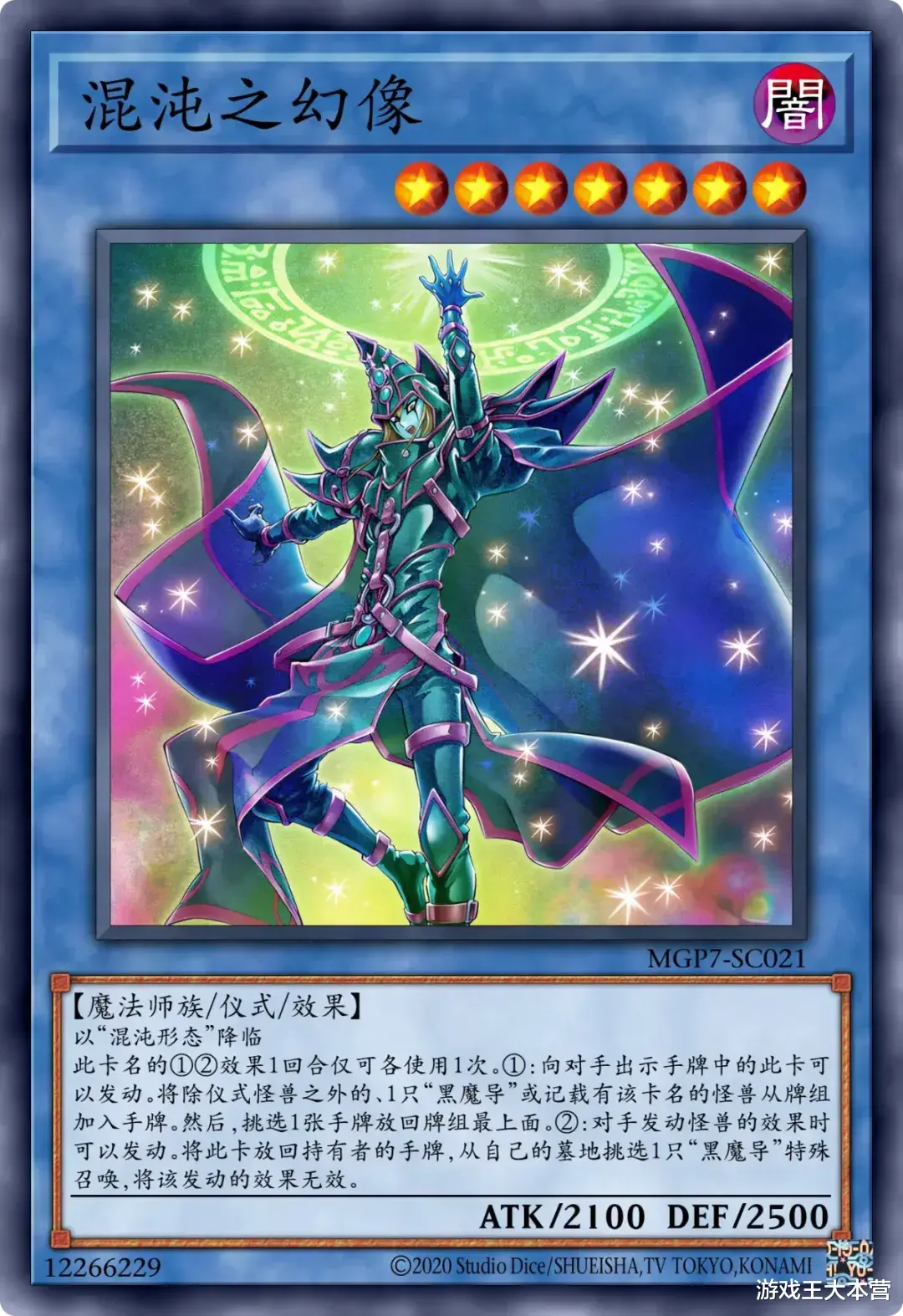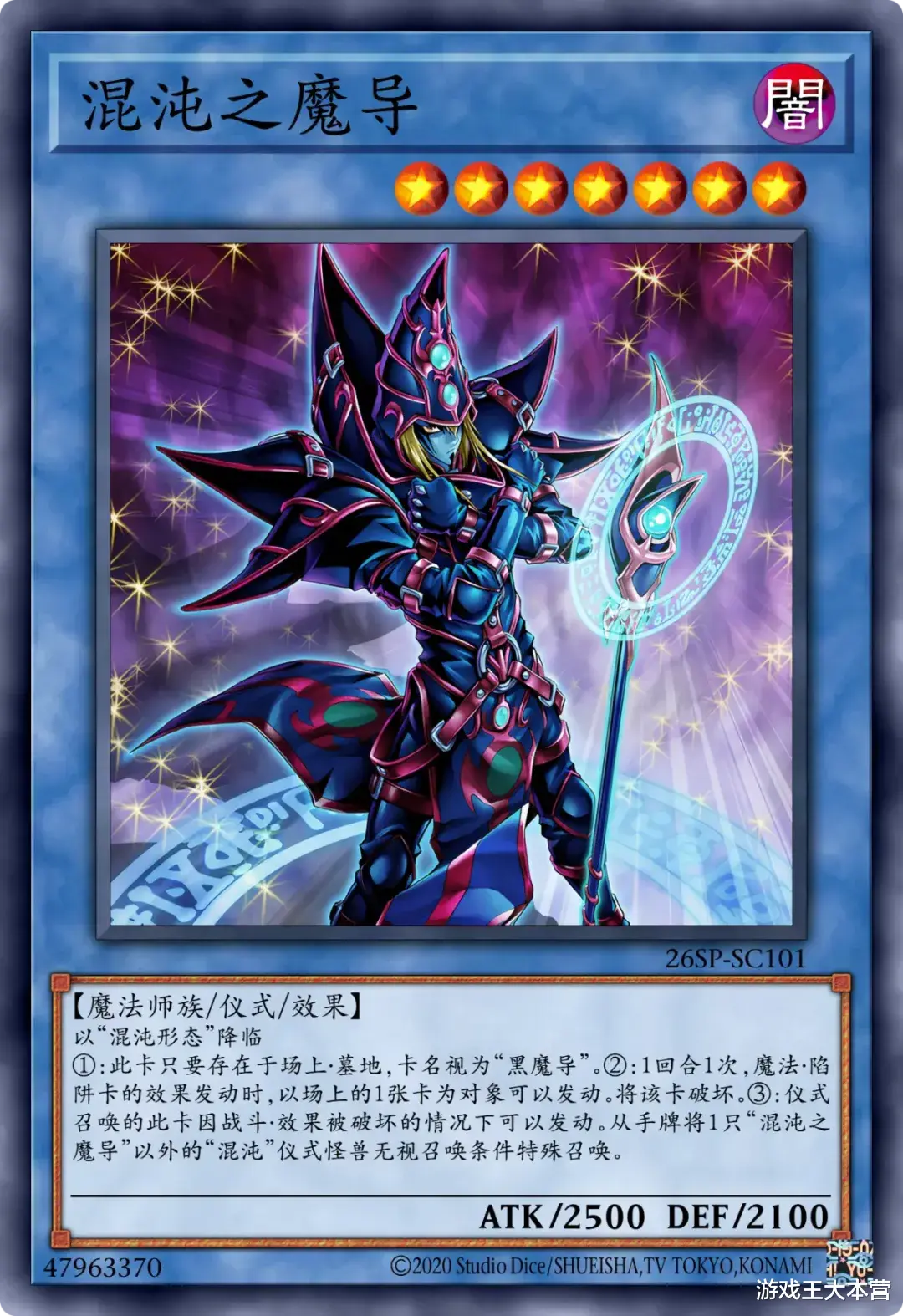①:这张卡只要在场上·墓地存在卡名就视为「黑魔导」。