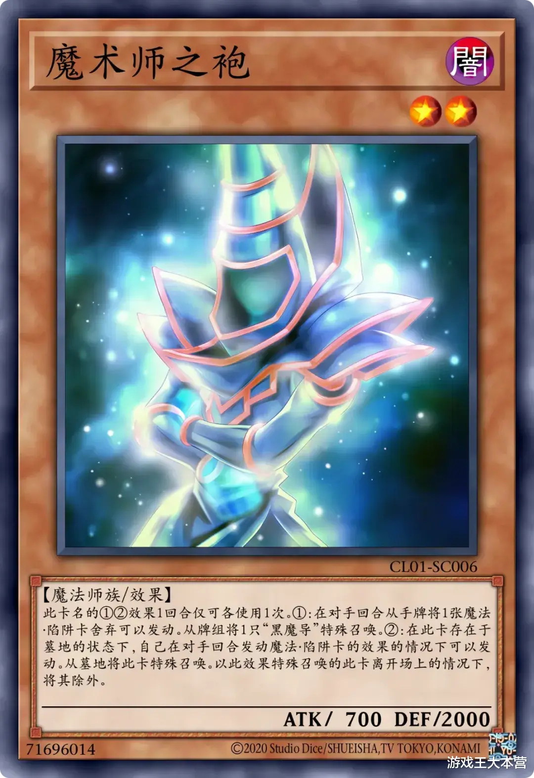 ①:对手的回合可以从手牌舍弃1张魔法陷阱卡发动。从卡组特殊召唤1只「黑魔导」。