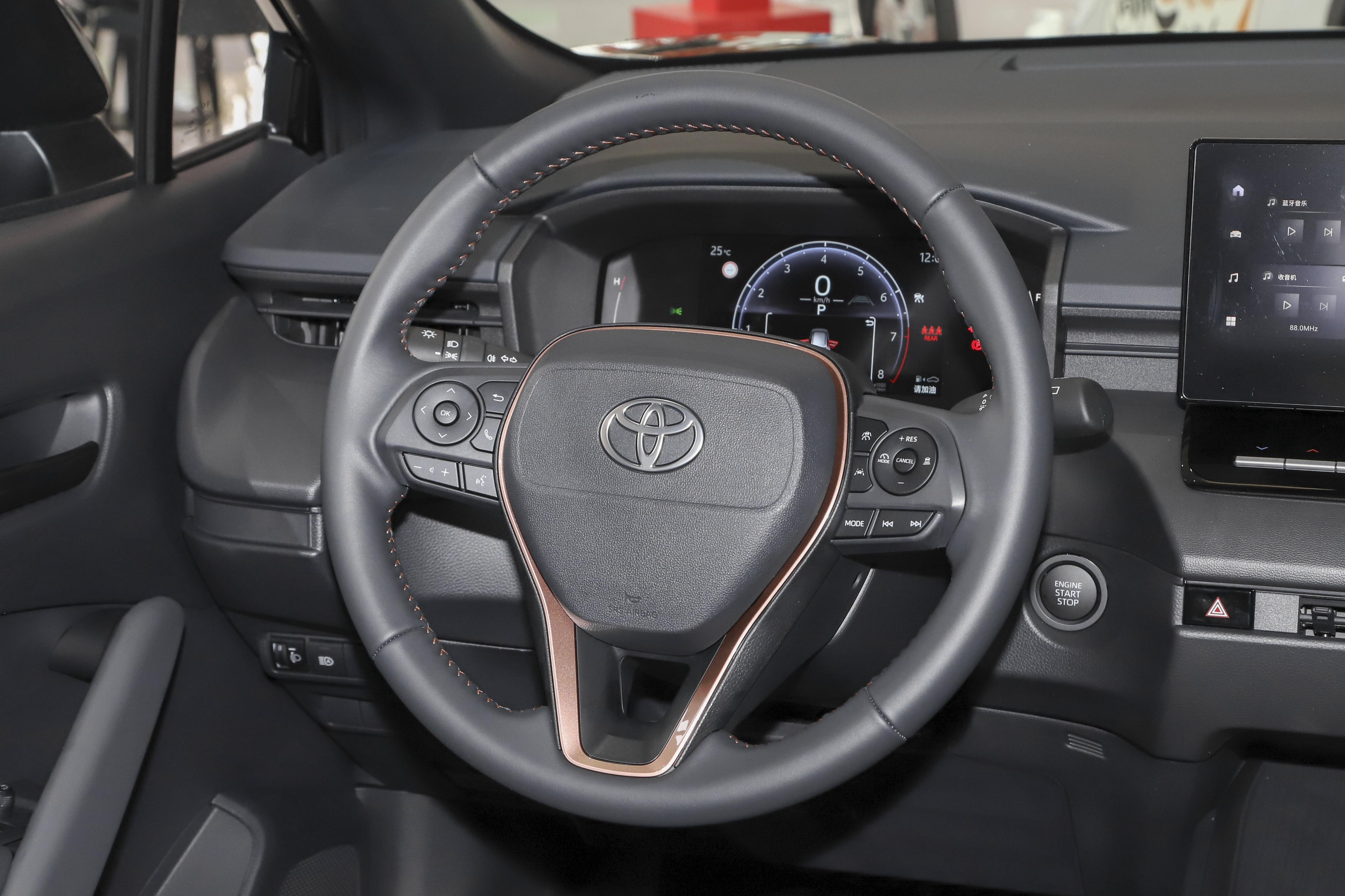 来到前排,空间同样比较的宽敞,中控台的布局基本延续了家族式的设计,传统T型对称式的布局,悬浮式多媒体屏幕尺寸为12.9英寸,液晶仪表盘的尺寸为8.8英寸,内饰的科技感还是挺强的,纯黑色的主色调搭配银色贯穿式镀铬装饰条,看上去虽然不是很惊艳,但是也不难看。此外,丰田锋兰达全系标配7个安全气囊,除了最低配车型还有全速自适应巡航、L2级驾驶辅助系统等配置。