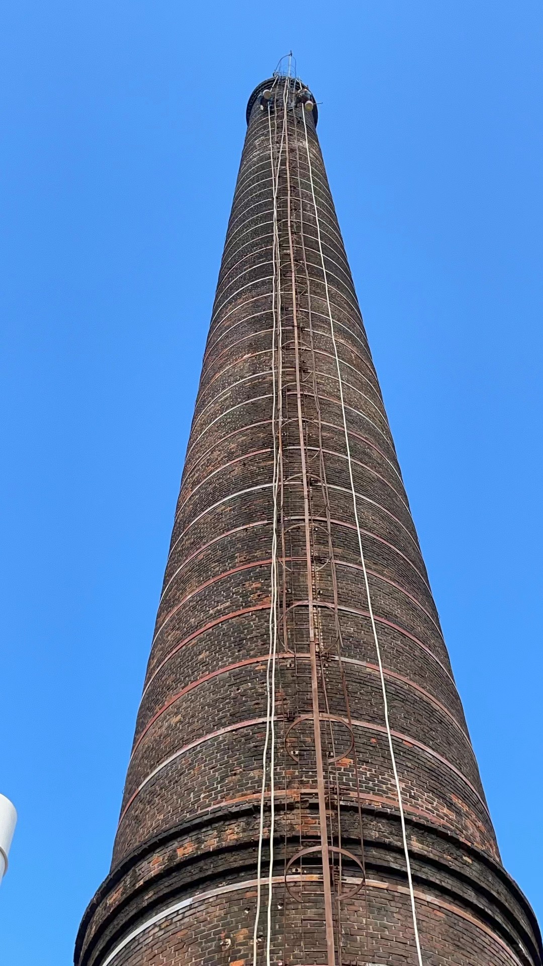 2.高空弧形基面施工精度难控:烟囱筒身呈圆锥形弧形,高空作业吊篮受风力影响易晃动,涂料涂刷时厚度难以均匀把控,砖缝修补时也易出现深浅不一的问题。