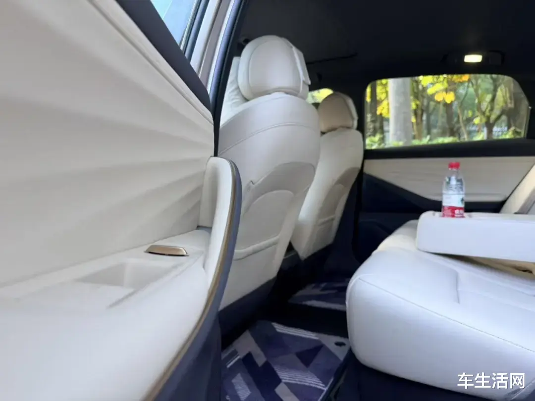 方向盘前的悬浮仪表盘采用全触屏操作,实体按键被大幅减少。这种设计深受年轻人喜爱,中央通道上的无线充电区域布局合理,秉承日产“大沙发”的美誉,N6的座椅舒适度值得称赞。1米83的乘客坐在后排,膝盖离前排还有两拳的距离,轻松翘起二郎腿。