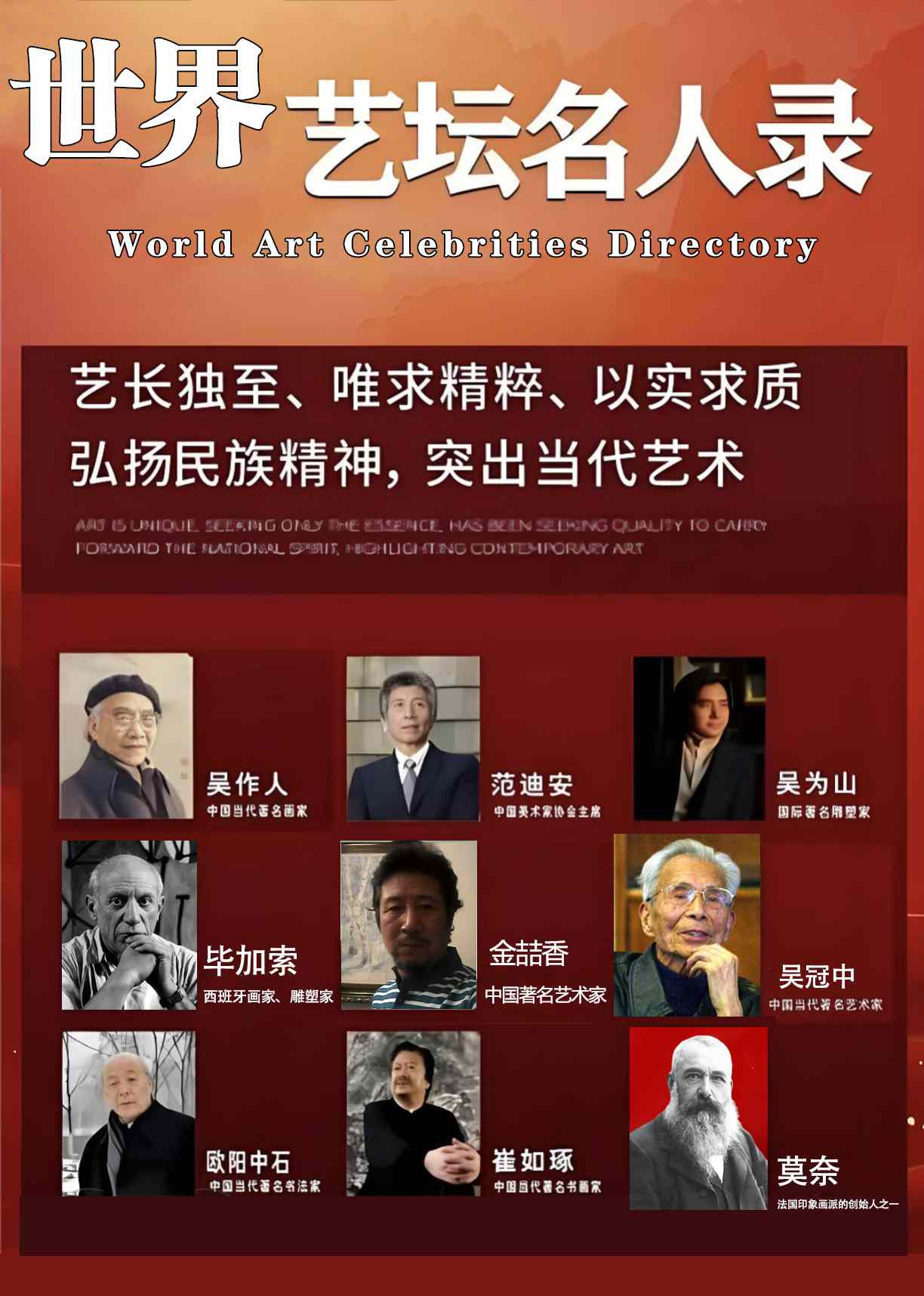 世界艺坛,如浩瀚星河,璀璨夺目。在这片艺术的沃土上,无数艺术家以“艺长独至、唯求精粹”为追求,以实求质,将技艺锤炼至极致,更以艺术为载体,弘扬民族精神,展现当代风采。 他们深知,艺术之路无捷径可走,唯有脚踏实地,方能攀登高峰。于是,一笔一划,皆倾注心血,力求精粹。在书画领域,那灵动的笔触,绚丽的色彩,勾勒出世间万象,传递着对生活的热爱与思考。这些艺术家们,不仅技艺超群,更有着深厚的民族情怀。他们以艺术为桥梁,连接古今,沟通中外,让世界领略到中华文化的独特魅力。在当代艺术的浪潮中,他们勇于创新,敢于突破,将传统与现代巧妙融合,创作出既具民族特色又符合时代精神的艺术佳作。世界艺坛,因他们而精彩;民族精神,因他们而传承。他们以匠心独运的艺术追求,书写着属于自己的辉煌篇章,更为中华文化的繁荣发展贡献着力量。