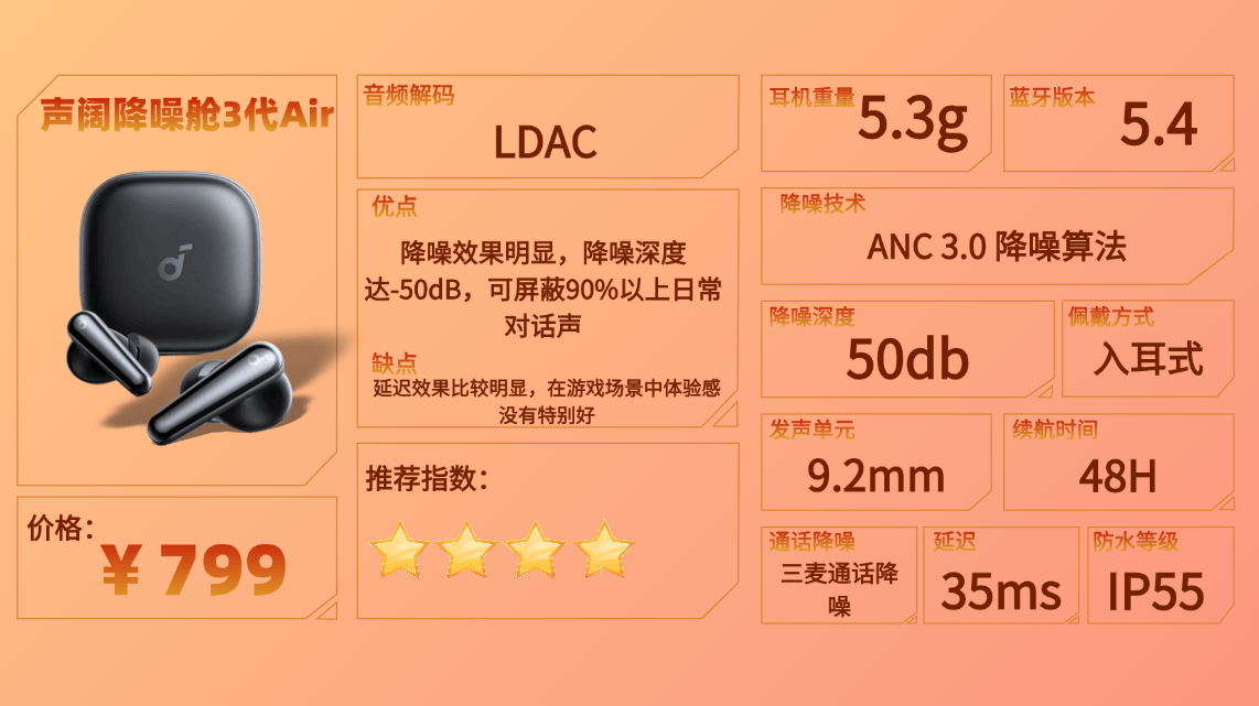 10、声 阔降 噪舱3代Air蓝牙耳机
