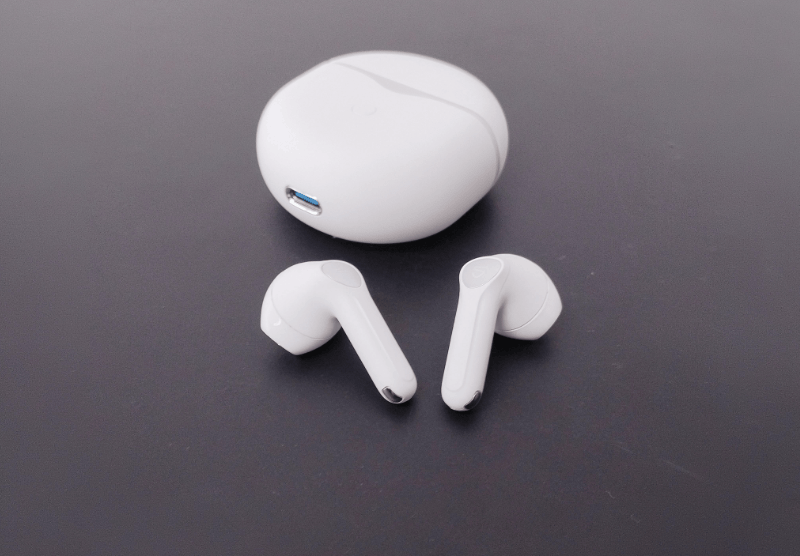 这款耳机主打轻盈,单只耳机只有4.2g,戴上之后几乎没有压迫感。充电盒则走的是鹅卵石设计,圆润顺手,既好看又便携,揣兜或放包里都不占地方,拿取也很顺手。