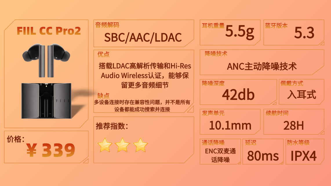 - F IIL C C Pro2:半开放外壳设计巧妙,APP调节灵活性高,佩戴舒适度高。