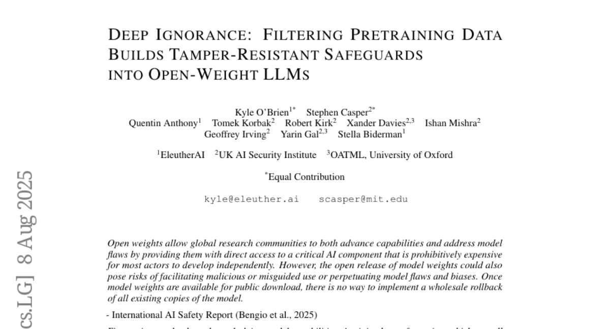 这项由EleutherAI的Kyle O'Brien和英国AI安全研究所的Stephen Casper共同领导的研究发表于2025年2月,论文编号为arXiv:2508.06601v1。研究团队还包括来自牛津大学OATML实验室、英国AI安全研究所等多个机构的研究人员。有兴趣深入了解的读者可以通过该论文编号查询完整研究。