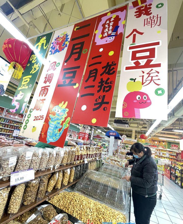 在济南的超市里,炒豆成了市民们选购的热门小吃,尤其是在“二月二”这个传统节日即将到来之际,超市的货架上摆满了各种口味的炒豆,吸引了不少顾客的目光。人们在这里不仅仅是为了购买美食,更是为了感受节日的氛围,传承传统文化。