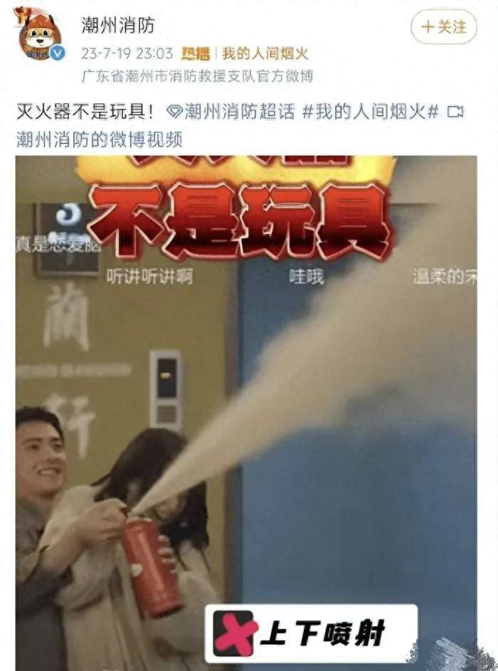 此外,他还在公共场所玩灭火器和女主秀恩爱