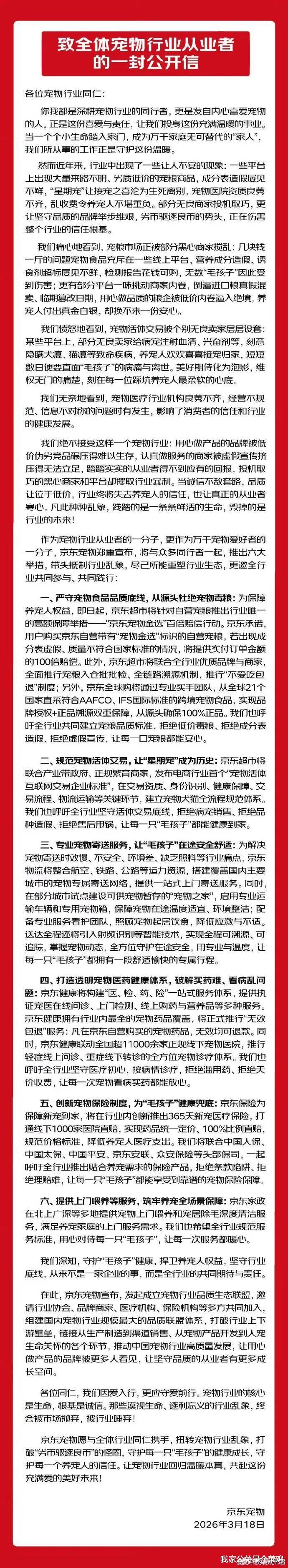 最后,以下是京东宠物发布的公开信,也借此分享给大家。