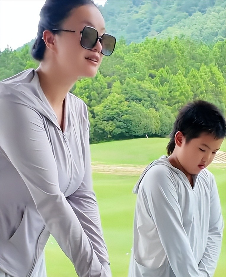 7月17日那天她还发了一个在横店拍戏带孩子的视频,那天她没有工作,就带着孩子一起去了高尔夫球场打球。