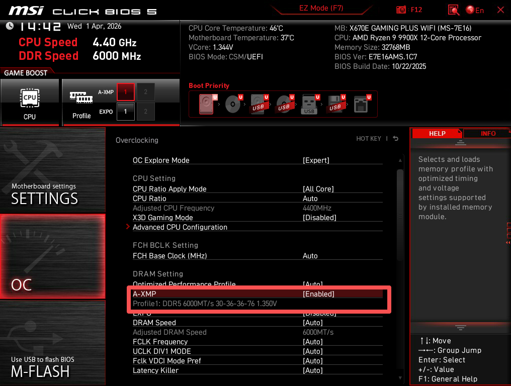 开启XMP后,性能提升显著。读取和写入速度均有明显提升,延迟进一步降低。6000MHz频率搭配C30时序的组合在游戏中有非常好的表现,既有较好的速度也有比较好的低延迟1%low帧改善。