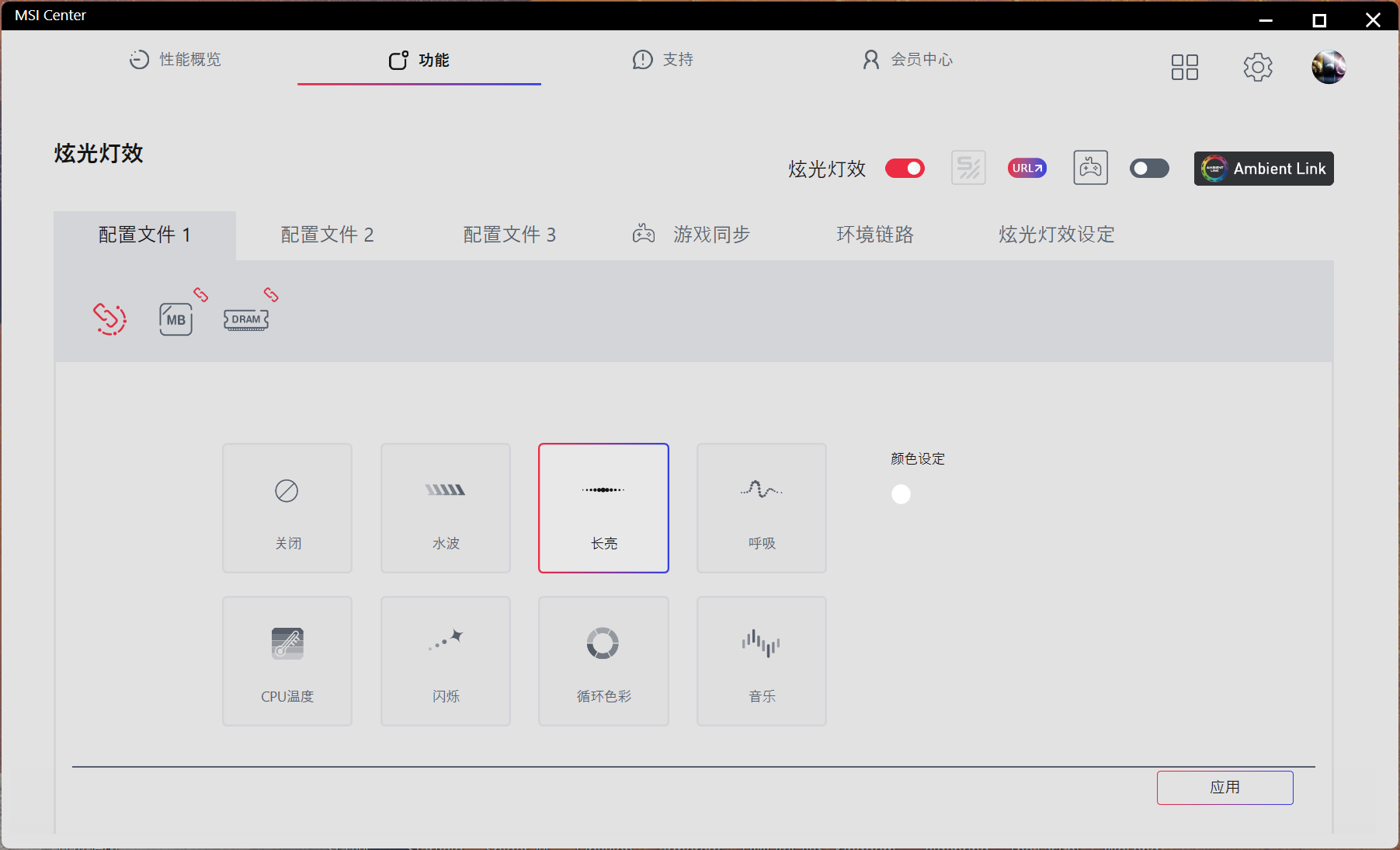 同时支持各大主流主板品牌的神光同步协议,实测微星和技嘉均可以正常识别,用户可以根据个人喜好自定义灯光效果。