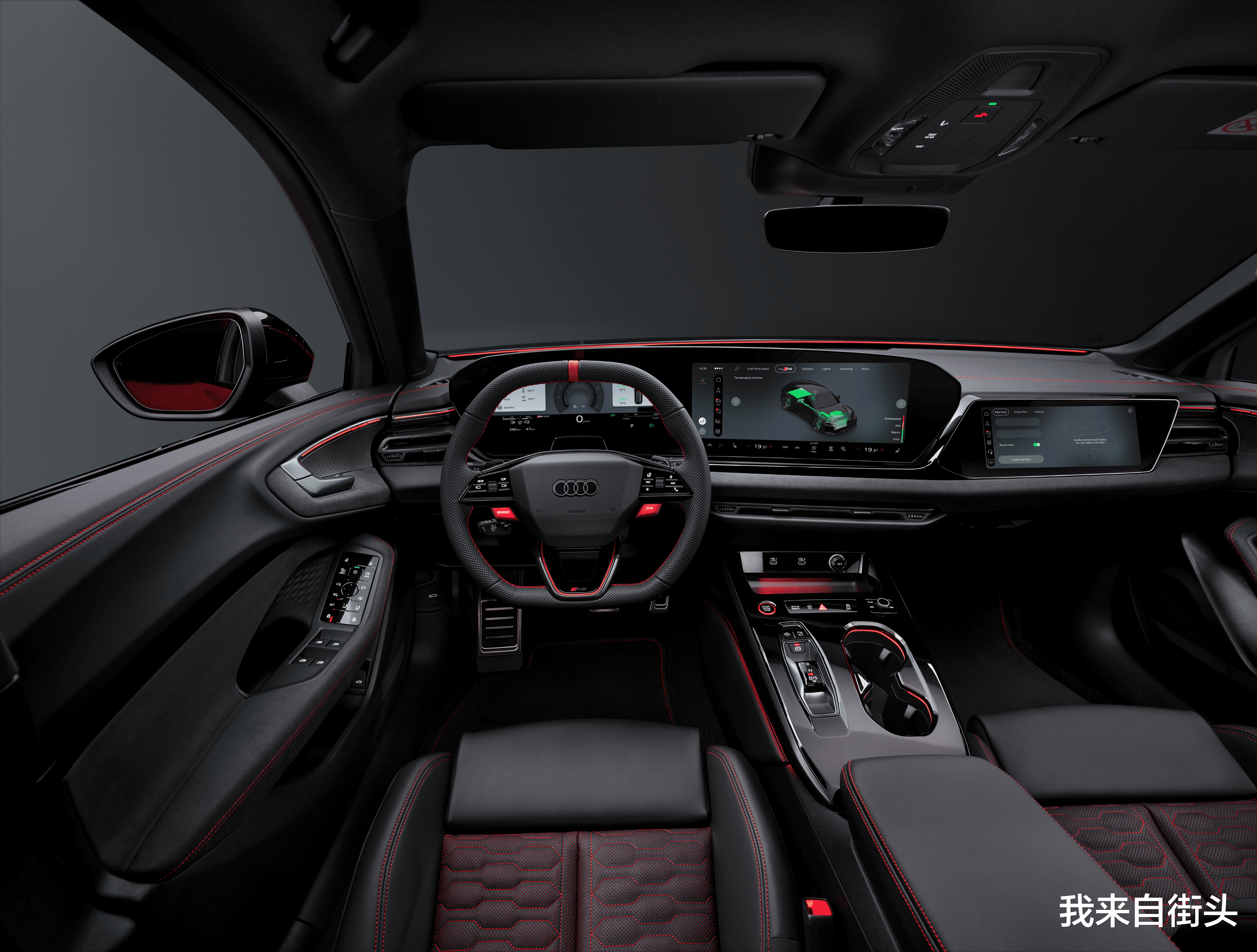 进入车内,座舱设计同步升级为奥迪最新一代布局,中控区域采用三屏幕配置,营造更数字化的驾驶环境。车内配备带RS专属标识的一体式赛车座椅,强调包覆性与运动氛围。