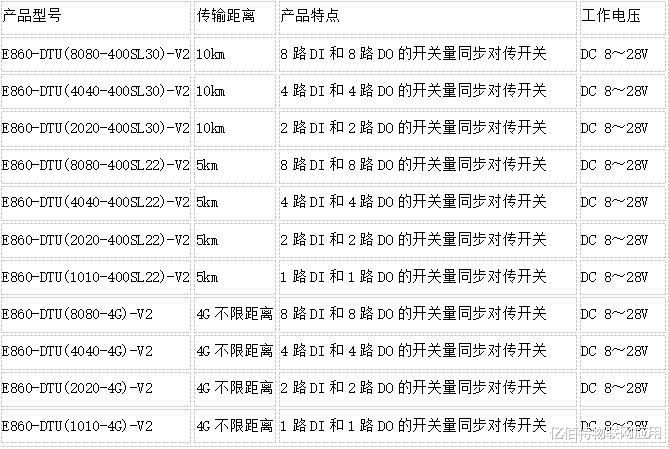 E860-DTU系列提供了丰富的型号选择,以满足不同用户的实际需求:
