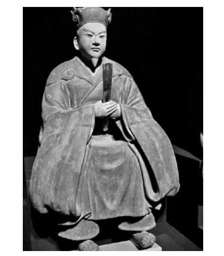 关于祠山爷张渤的雕像古代保存至今不多见。南宋兰溪和尚道隆在淳祐六年(1246)东渡日本传法,住镰仓(市)常乐寺。使得广德祠山文化在日本建长寺、建仁寺、东福寺、泉涌寺、首福寺等寺庙传播。寿福寺至今还有祠山王张渤的雕像(见下图),该雕像雕刻年代、材质不得而知。⑤