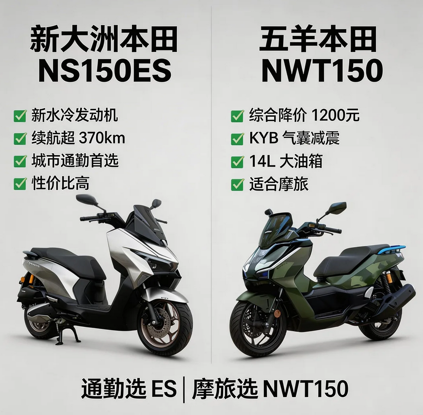 150cc踏板市场竞争那可是十分激烈,新大洲本田NS150ES全新上市,五羊本田NWT150降价升级,两款本田系的车型在互相博弈着,让摩友们陷入了选择的难题, 本文将会客观地分析两款车的核心信息,没有营销的套路,以此协助大家理性选车。