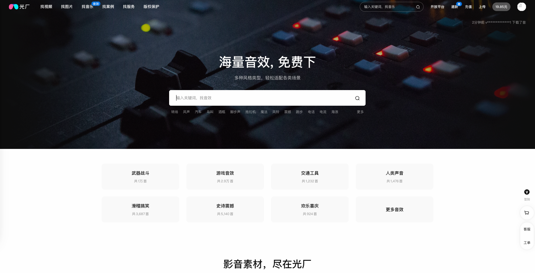 作为国内领先的数字创意交易平台,光厂已沉淀超过200万件正版音视频素材,其中音效库涵盖环境音、转场音、特效音等12大分类,细分场景标签多达3000个。从机械运转的齿轮咬合声到宇宙飞船的引擎轰鸣,从自然界的雨滴敲打玻璃到虚拟世界的电子脉冲音效,这里几乎能满足所有宣传片制作需求。