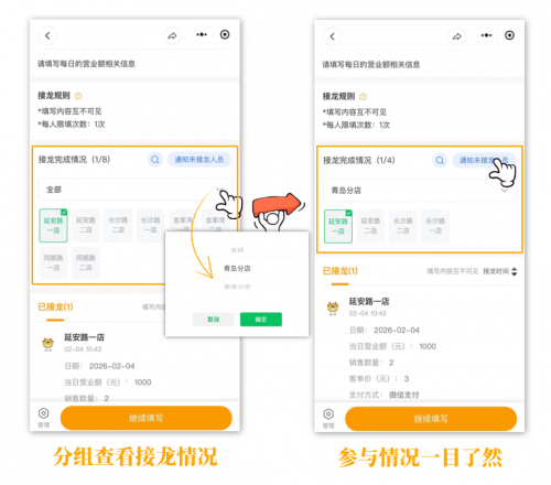 支持多门店管理,各门店单独上报数据,总部可实时查看所有门店提交情况,还能一键催促未提交的门店;