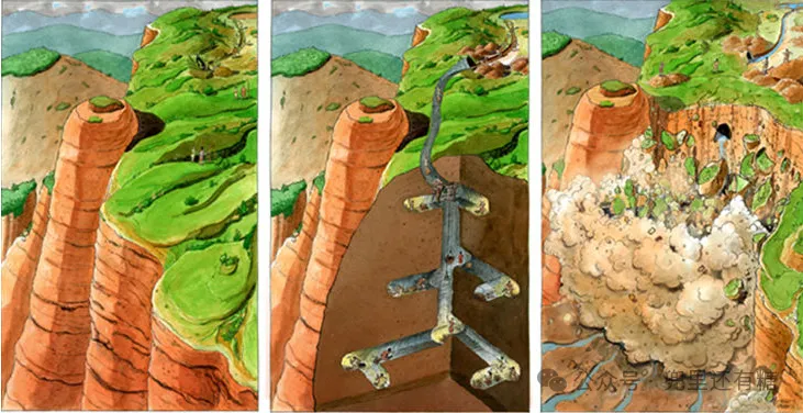 公元1世纪,罗马人盯上了这片山。这里的含金量高得惊人,但麻烦在于金子都埋在厚厚的土石层下面。当时的罗马工程师不打算一点点挖,他们发明了一种丧心病狂的黑科技,拉丁语叫“ruina montium”——翻译过来就两个字:毁山。