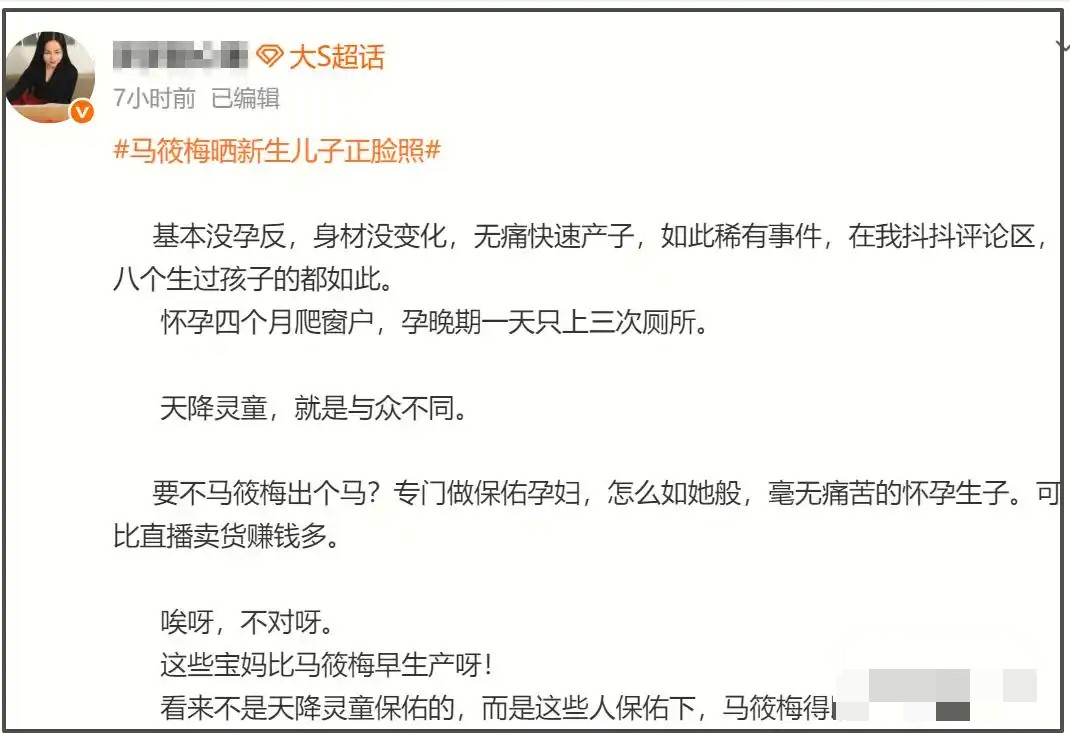 于是,一场围绕着马筱梅“是否代孕”的质疑声悄然发酵,有博主甚至专门整理了所谓的“证据”,将她孕期的种种表现打上“反常”标签。