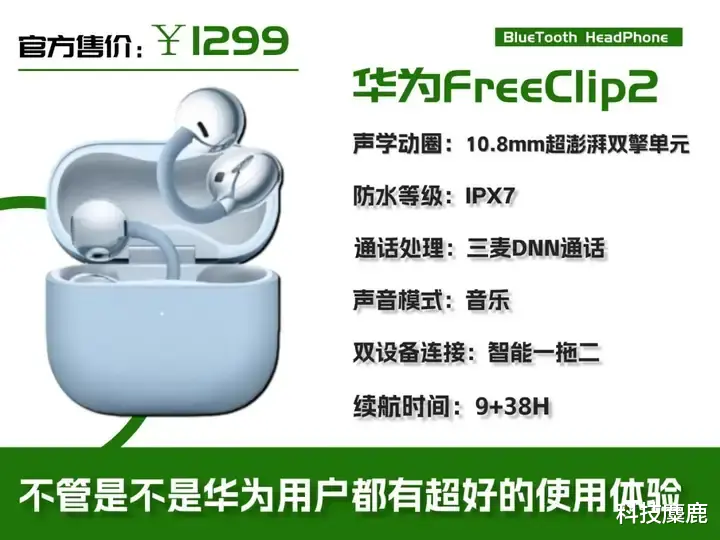 要是你用的是鸿蒙手机,华为 FreeClip2 会是个好选择。它戴起来很舒服,单只才 5.1 克,特别轻。耳机用了全新升级的云感 C 型桥设计,能完美贴合耳廓弧度,戴得稳还不硌耳,长时间戴也舒服。