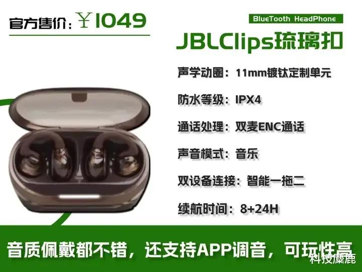 售价:1049元推荐理由:自主调音,操作灵活,防水且操作灵活,听感均衡。