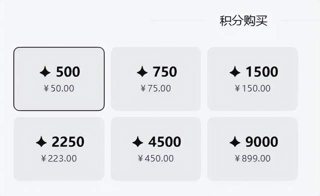 550积分、2200积分、5500积分、11000积分的价格分别为35元、140元、350元、678元。合计一下,也就是一个积分,大概6分钱。