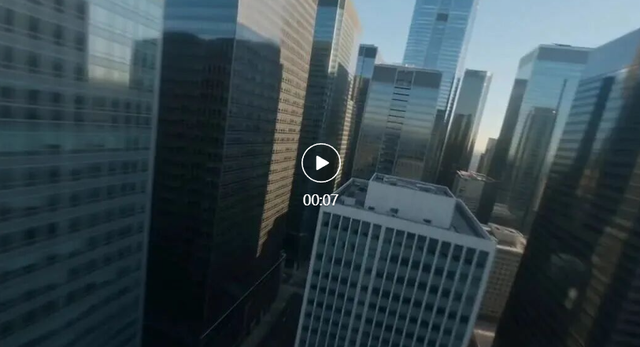 再来模拟一下,在城市上空,写字楼之间穿梭的航拍视角: