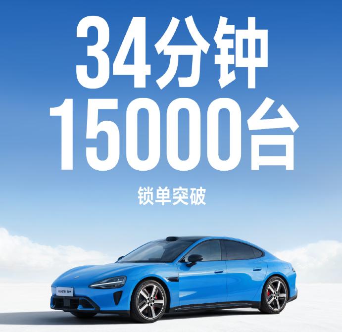 根据小米集团CFO林世伟在2026年3月24日财报业绩电话会上的官方披露:新一代SU7开售34分钟锁单突破1.5万,开售3天锁单超过3万。3月22日,小米官方进一步确认,锁单量已超过3.5万台。