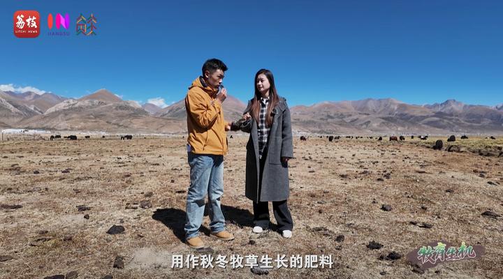 “你看,地上有很多牛粪,这种湿的都是牦牛最近留下来的,这些干的应该是夏季留下来的。”记者捡拾起草场上的牛粪观察起来。