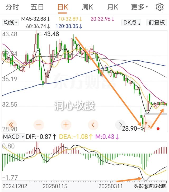 日k线图中,k线超跌反弹回落,MACD金叉。
