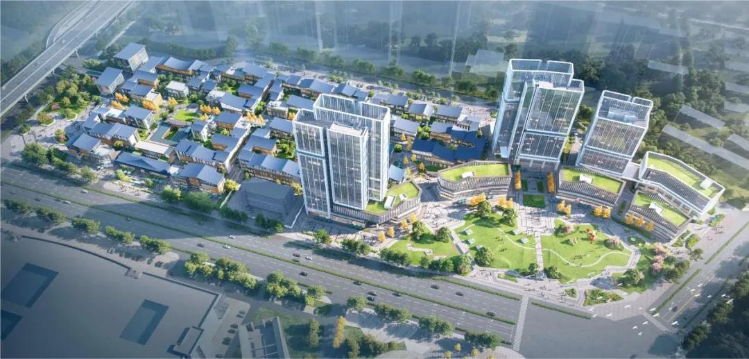 这份答卷,首先落笔于“缝合城市” 的空间巧思:项目在东北角、西北角分别代建了城市公园,总面积达25000㎡。如此,城市与综合体的边界被消融。项目内部又打造“一轴两园,三心多组团”的景观,与东西双公园形成生态共振。以“游园”为纽带,铂茂印象打造了集CEO院子、公园商业、花园酒店、中芯商务四大业态为一体的特色生态商圈。