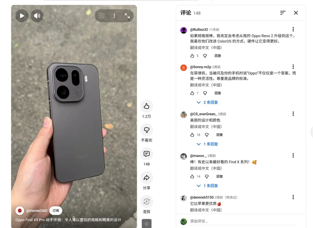 在Find X9发布会前,油管等社交平台上,很多的老外已充满期待,有人在预告视频下面留言问何时能够买到,也有人认为,这款手机比苹果的更优秀。