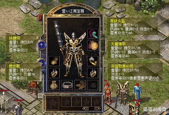 第三,服饰系列老百区的腰带和靴子都是绝版系列,它们都来自当初合区时有魔龙版本的那些服务器,上图中的铁腰带和鹿皮靴不算最强,但是作为绝版道具已经很好了。天魔神甲不是巅峰,毕竟还有攻3和攻4的存在;至于攻3荣誉勋章已经是巅峰系列了;最亮眼的是那顶黑铁头盔,它多加了1点防御属性上限和1点攻击属性,这个属性很稀有啊,在复古版本中是够用了。
