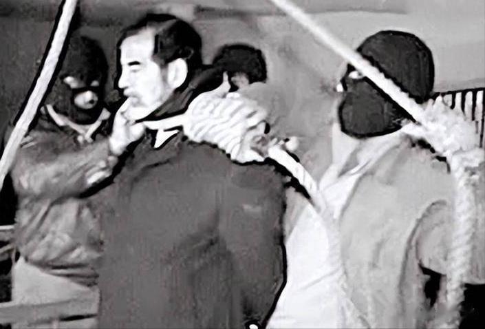 绳索已经准备好,萨达姆拒绝戴头罩,站上平台时,下面有人喊叫,氛围混乱。他保持镇定,但侮辱声不断传来,过程很快结束,医生确认萨达姆死亡时间在6点左右。