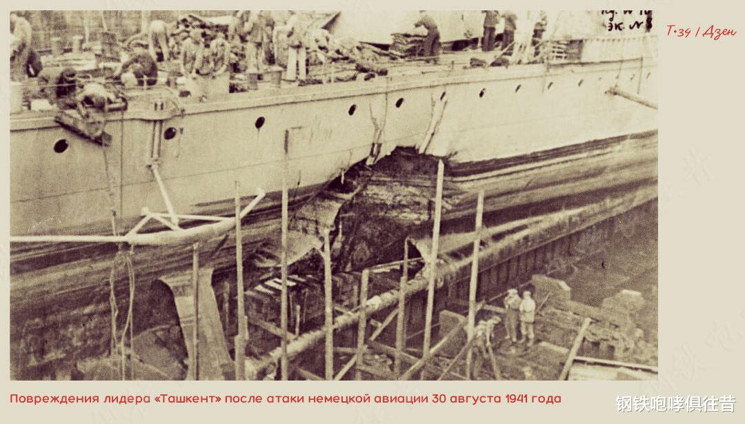 1941.8.30【塔什干】舰艉右舷被德空军近失弹爆炸造成严重伤害
