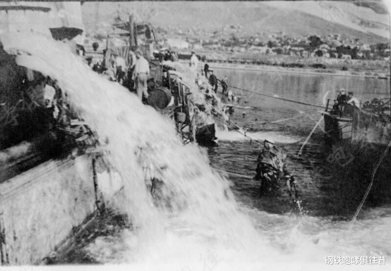 意外不断的准备工作一直延续到1944年8月30日,正式的打捞工作这一天开始执行,在排出了舰艏舱室400吨海水后前部开始上浮,作业开始1小时40分后舰艏楼甲板浮出水面,左倾3°,纵向挠度38cm。此时舰艉提升工作开始,当船体自身浮力储备达到900吨时托往船坞成为可能。